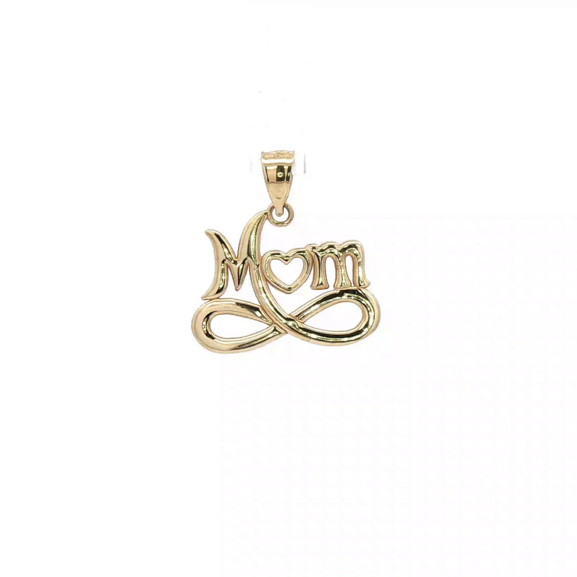 Celebrate the boundless love of motherhood with this daring Mom's charm. Crafted from 10 kt gold, its sleek 2 cm by 1.2 cm design carries a powerful symbol of infinite affection. Weighing just 1.7 grams, it’s a bold yet elegant statement piece that honors the unbreakable bond with fearless style.